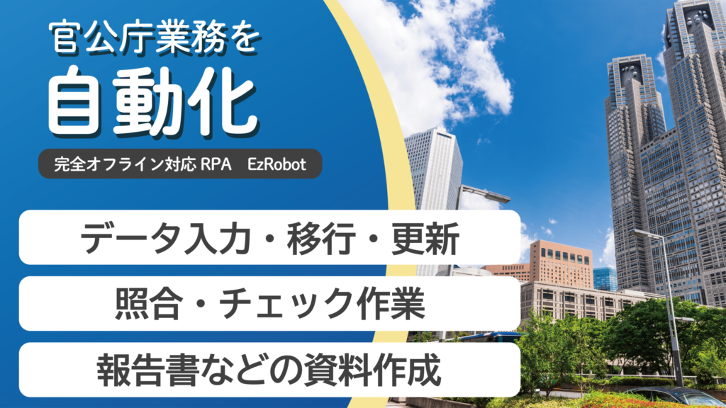 【自治体の庁内PC業務を自動化】セキュアな完全オフラインで稼働可能、自治体含む1,300社の導入実績|RPA EzRobot