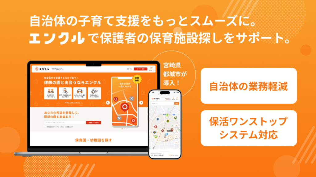エンクルが令和8年度から全国展開の「保活ワンストップ」を自治体毎のニーズに応じたオリジナル構築で保育DX化をサポートします。