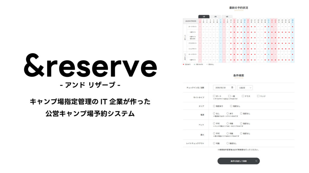 「&reserve」 公営キャンプ場運営のIT企業が作った、公営キャンプ場向け予約システム。様々な課題へのDX推進提案も行います。
