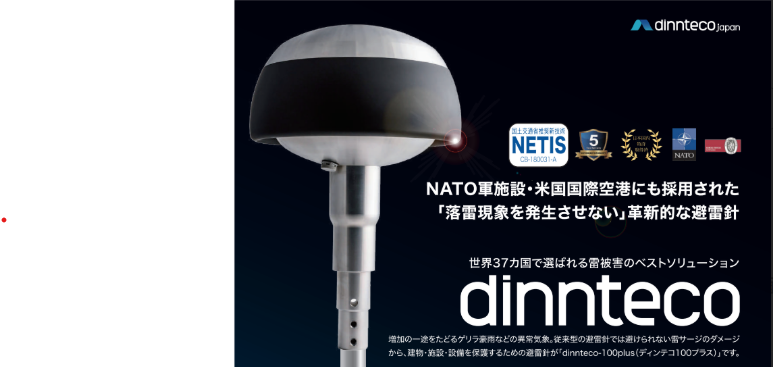 落雷被害でお困りの方に!「dinnteco-100plus」は落雷現象そのものを発生させない電荷中和型避雷針です。