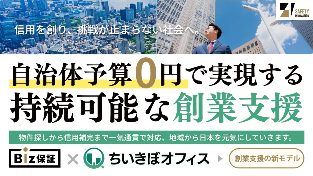 地方創生・創業支援担当者様へ!自治体予算ゼロで導入できる『創業信用インフラ』。事業者の物件確保と信用補完を一体で解決します。